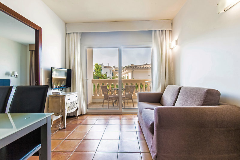 - 46-50 qm, Appartement, Superior, Gartenblick, Poolblick, 1 separates Schlafzimmer, 1 Bad, Dusche, Haartrockner, Klimaanlage, Heizung, Mini-Kühlschrank, Safe, 1 TV (Sat-TV), WLAN, Kochnische, Wasserkocher, Mikrowelle, Kaffeemaschine, Balkon oder Terrasse (möbliert)