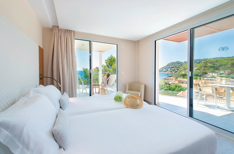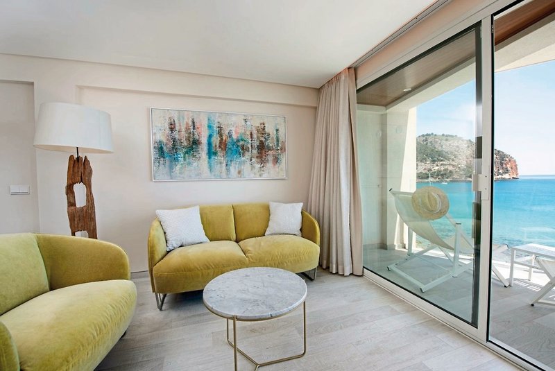 - 51-60 qm, Suite, 2 Etagen, Deluxe, Etage, oberen, Meerblick, kombinierter Wohn-/Schlafraum, Sitzecke, bodengleiche Dusche, Bademantel, Badeslipper, Haartrockner, Klimaanlage, Minibar kostenpflichtig, Safe, 1 TV (Sat-TV, Flachbildschirm), WLAN, Espressomaschine, Balkon 26-30 qm (möbliert), Whirlpool, privilegierter Zimmerservice, Kopfkissen-Menü, Pooltuch, bei Ankunft im Zimmer Wasser, Flasche Sekt