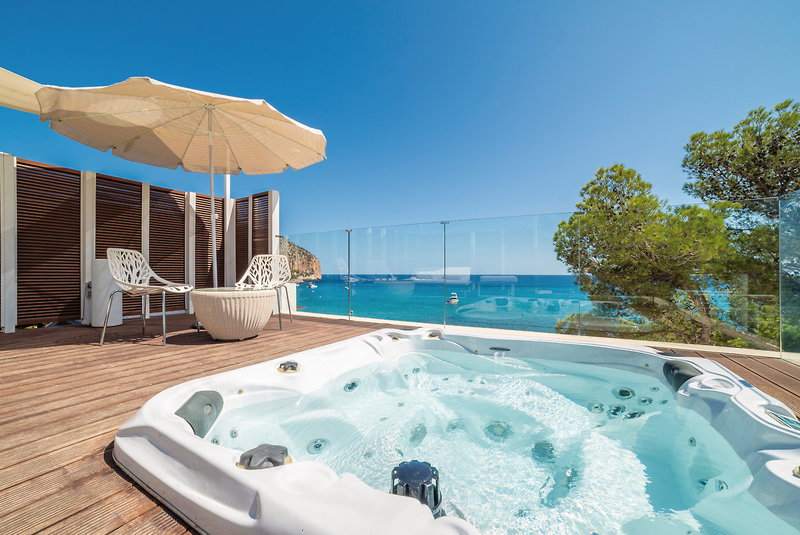 - 71-80 qm, Suite, 2 Etagen, Etage, oberen, Meerblick, kombinierter Wohn-/Schlafraum, Sitzecke, bodengleiche Dusche, Bademantel, Badeslipper, Haartrockner, Klimaanlage, Minibar kostenpflichtig, Safe, 1 TV (Sat-TV, Flachbildschirm), WLAN, Espressomaschine, Balkon 36-40 qm (möbliert, balinesische Betten), Whirlpool, privilegierter Zimmerservice, Kopfkissen-Menü, Pooltuch, bei Ankunft im Zimmer Wasser, Flasche Sekt