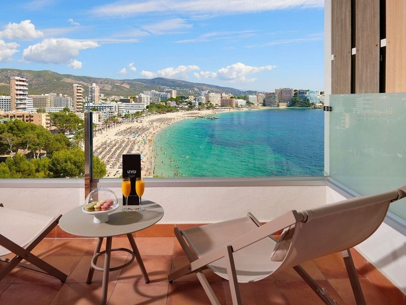 Poloha a okolie Tento atraktívny luxusný hotel sa nachádza na okraji mesta Magaluf. Nachádza sa v mierne vyvýšenej polohe, priamo na pláži a ponúka nádherný výhľad na záliv. Úchvatná piesočnatá pláž sa nachádza priamo pred hotelom. Do mnohých obchodov a zábavných podnikov v meste Magaluf sa dostanete za pár minút.