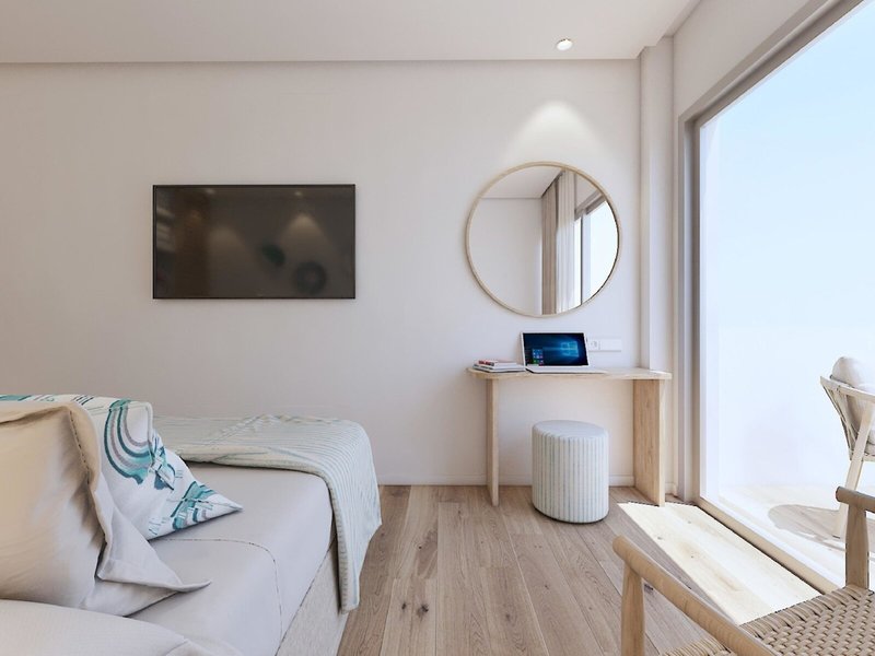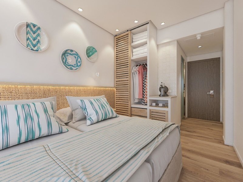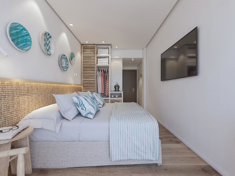 - Junior Suite Sea View (JSM1), Juniorsuite, im Hauptgebäude, erste Strandreihe, Meerblick, Buchtblick, ca. 18 - 19 m², letzte Komplettrenovierung 2025, Gesamtanzahl der Räume in diesem Zimmertyp: 1, Aufteilung wie folgt: 1 Schlafzimmer, 2 Einzelbetten (90x190cm), Klimaanlage: individuell regelbar, zentral gesteuert, kalt, warm, Heizung: zentral gesteuert, Fußboden: Fliesenboden, Laminat, Safe: gegen Gebühr, Schreibtisch, Telefon, Internet: WLAN/WiFi: ohne Gebühr, Fernseher: Flatscreen, im Schlafzimmer, deutsches Programm, SKY-Programme, Reinigungsservice, Dusche, WC, Bademantel: ohne Gebühr, Föhn, Kosmetikspiegel, Balkon oder Terrasse: mit Liegen, mit Sitzgelegenheit
