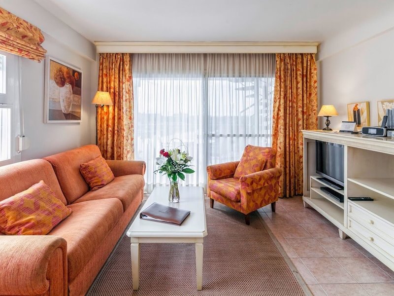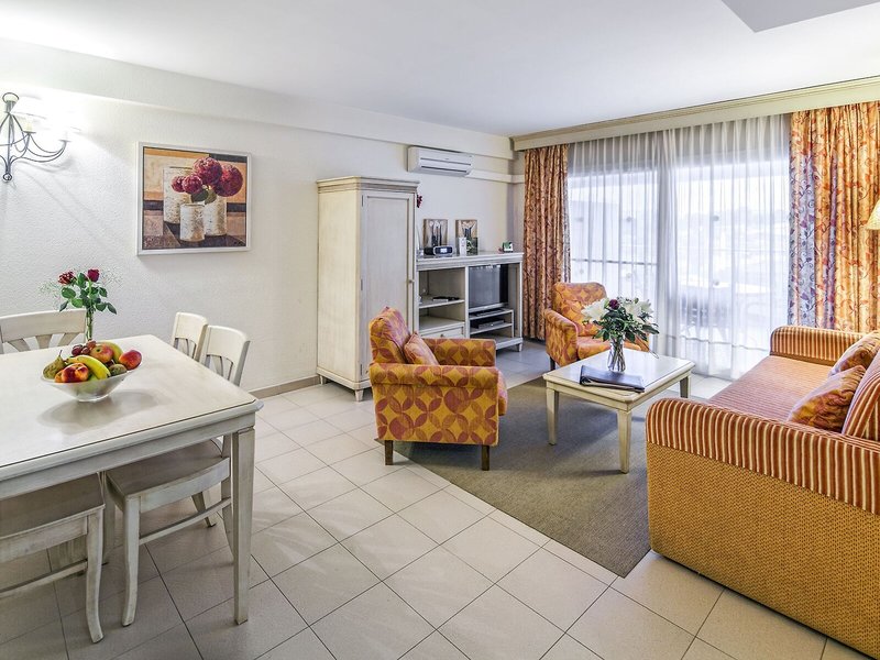 Vaše ubytovanie: Hostia si môžu vychutnať výhľad na bazén zo svojho balkóna alebo terasy. Izby sú vybavené manželskou posteľou a rozkladacou pohovkou. Prístelky sú k dispozícii na požiadanie. K dispozícii je aj minibar a písací stôl. Kuchynka je vybavená chladničkou. K dispozícii je aj práčka a žehliaca súprava. K dispozícii je aj rádio, CD prehrávač, DVD prehrávač a Wi-Fi pripojenie na internet. Kúpeľňa s vaňou je vybavená telefónom. Pre väčšie pohodlie sú k dispozícii toaletné potreby. K dispozícii sú aj bezbariérové izby s bezbariérovými kúpeľňami. Hotel ponúka rodinné a nefajčiarske izby.