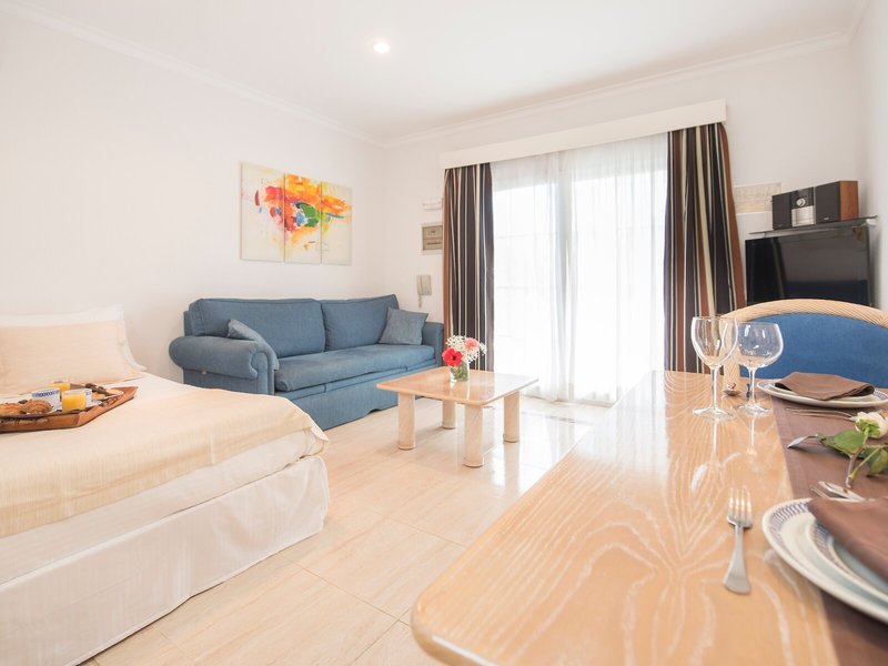 So wohnen Sie: In den Zimmern finden sich ein Wohnzimmer, eine Küche und ein Badezimmer, für ein behagliches Raumklima sorgen eine Klimaanlage und eine zentral steuerbare Heizung. Die Gäste können den Gartenblick von Balkon oder Terrasse genießen. Die Zimmer verfügen über ein Doppelbett oder ein Sofabett. Es sind separate Schlafzimmer vorhanden. Zustellbetten können angefordert werden. Außerdem sind ein Safe und ein Schreibtisch verfügbar. Die Kochnische ist mit einem Kühlschrank, einem Herd, einer Mikrowelle, einer Tee-/Kaffeemaschine und einem Backofen gut für Selbstversorger ausgestattet. Ein Bügelset ist für den zusätzlichen Komfort der Gäste verfügbar. Darüber hinaus sind ein Telefon, Sat-TV und WiFi (gegen Gebühr) vorhanden. Im Badezimmer, ausgestattet mit einer Dusche und einer Badewanne, gibt es einen Haartrockner. Für besonderen Komfort in den Badezimmern sorgen Kosmetikartikel. Für Eltern mit Kindern stehen Familienzimmer zur Verfügung.