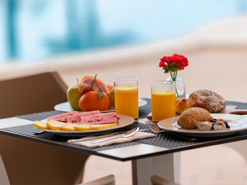 Jedlo a nápoje: Hotel má reštauráciu a bar. Ubytovanie ponúka polpenziu, plnú penziu a all inclusive stravovanie. Denne sa podávajú kontinentálne raňajky formou bufetu a obedový bufet. Apartmánový hotel ponúka aj občerstvenie. Hotel ponúka výber alkoholických a nealkoholických nápojov.