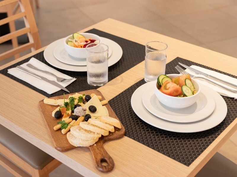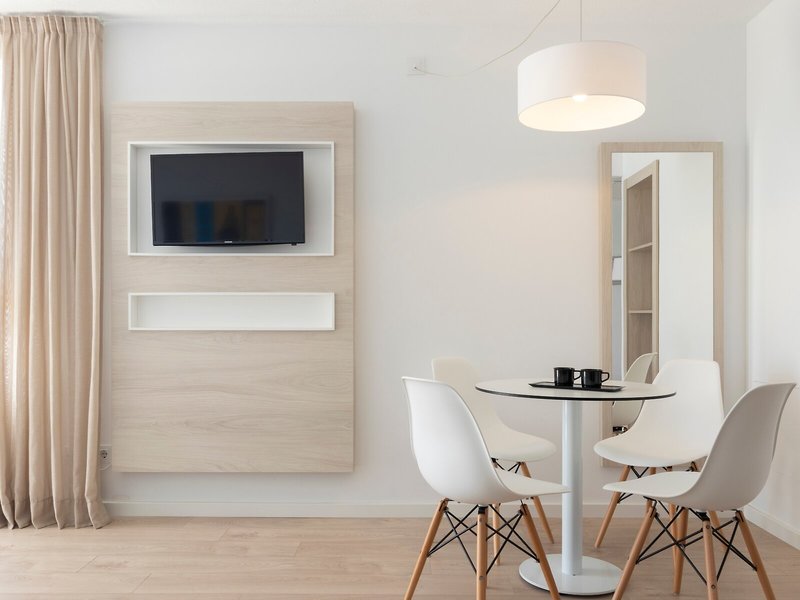 Essen & Trinken: Das Hotel verfügt über ein Restaurant und eine Bar. Die Unterbringung bietet als buchbare Verpflegungsleistungen Halbpension, Vollpension und All-Inclusive. Täglich werden ein kontinentales Buffetfrühstück und ein Mittagsbuffet serviert. Darüber hinaus stellt das Apartmenthotel Snacks bereit. Das Hotel führt ein Sortiment alkoholischer und alkoholfreier Getränke.