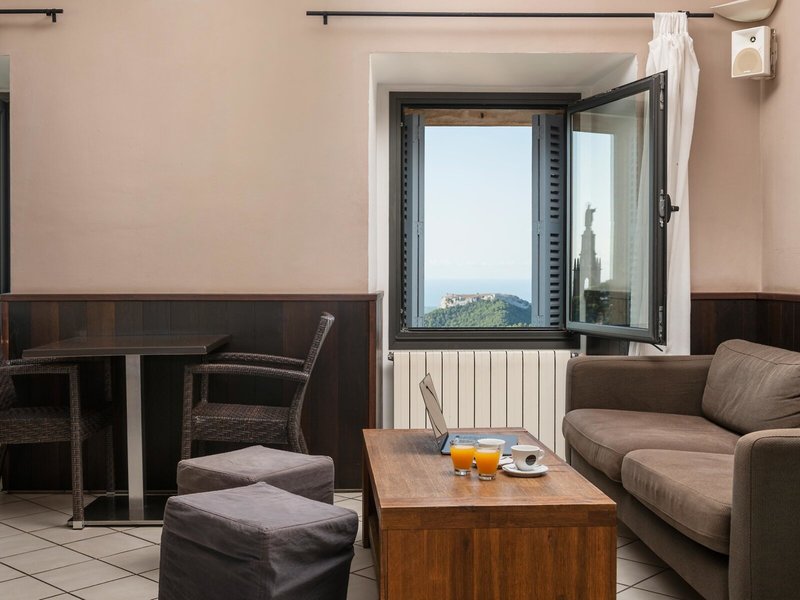- Apartmán (APX1), viaclôžková, nefajčiarska izba, v hlavnej budove, horská strana, výhľad na more, výhľad na hory, cca 55 m², celkový počet izieb v tomto type izby: 2, rozloženie: pozostáva z 2 dvojposteľové izby so spojovacími dverami, 4 samostatné postele, 1 rozkladacia pohovka, kúrenie , Podlaha: dlažba, posedenie, pohovka, písací stôl, chladnička, mikrovlnná rúra, kávovar, jedálenský stôl, Internet: WLAN/WiFi, TV, sprcha, vlasy sušička, balkón