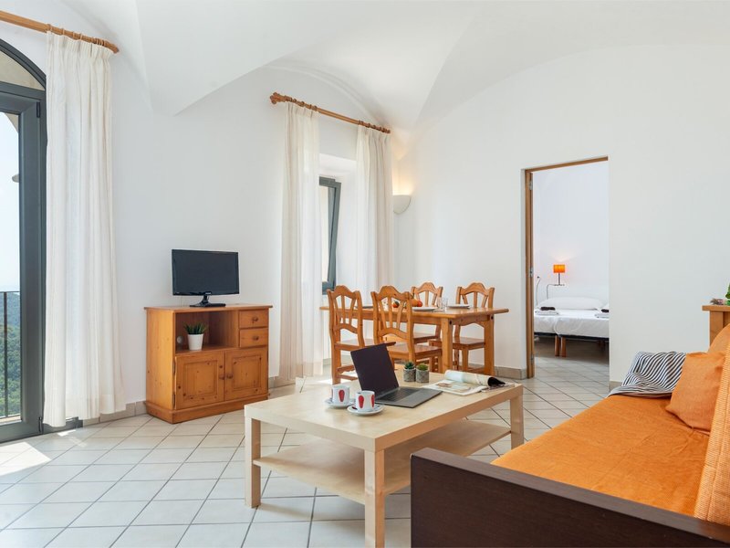 - Appartement (APX1), Mehrbett, Nichtraucherzimmer, im Hauptgebäude, Bergseite, Meerblick, Bergblick, ca. 55 m², Gesamtanzahl der Räume in diesem Zimmertyp: 2, Aufteilung wie folgt: bestehend aus 2 Doppelzimmern mit Verbindungstür, 4 Einzelbetten, 1 Schlafsofa, Heizung, Fußboden: Fliesenboden, Sitzecke, Sofa, Schreibtisch, Kühlschrank, Mikrowelle, Kaffeemaschine, Esstisch, Internet: WLAN/WiFi, Fernseher, Dusche, Föhn, Balkon