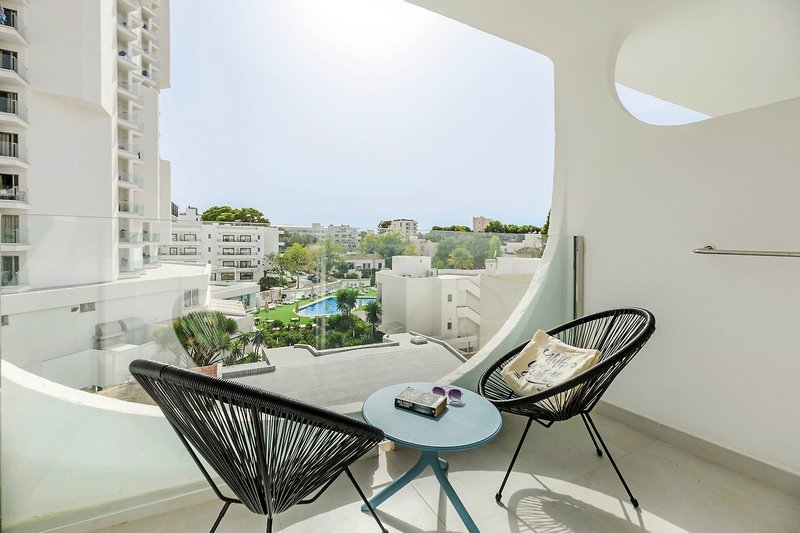 - Poolblick, 1 Bad, Dusche, Haartrockner, Klimaanlage, Heizung, Safe, 1 TV (Sat-TV), Balkon (möbliert)