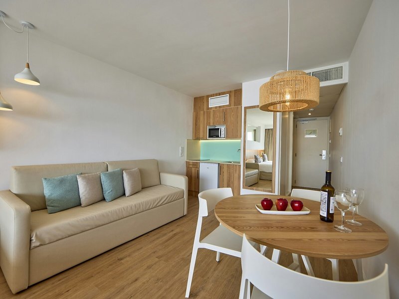 Ubytovanie: Izby majú obývaciu izbu, kuchyňu a kúpeľňu. Klimatizácia a kúrenie zabezpečujú príjemnú vnútornú klímu. Väčšina izieb má štandardne balkón alebo terasu. Hostia sa môžu pohodlne vyspať na rozkladacej pohovke. Cennosti si môžete bezpečne uložiť v trezore. K dispozícii je aj chladnička, mikrovlnná rúra a zariadenie na prípravu čaju/kávy. Telefón, TV s plochou obrazovkou a Wi-Fi poskytujú maximálne pohodlie počas dovolenky.