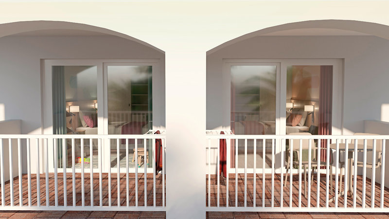 - 41-45 qm, 2 Doppelzimmer, mit Verbindungstür, 2 Bäder, Dusche oder Badewanne, Haartrockner, Klimaanlage, Mini-Kühlschrank, Safe (kostenpflichtig), 2 TVs (Sat-TV, Flachbildschirm), WLAN, Balkon (möbliert), Für Familien, im besonderen Calimera-Design, Kinderspielecke