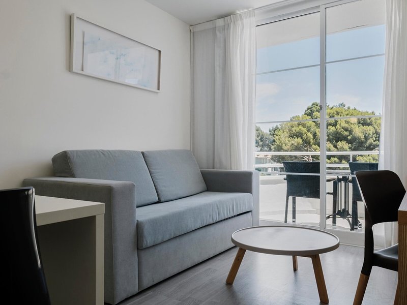 - Apartment (APX4), Appartement, Nichtraucherzimmer, ca. 40 m², letzte Teilrenovierung 2016, Gesamtanzahl der Räume in diesem Zimmertyp: 2, Aufteilung wie folgt: kombiniertes Wohn-/Schlafzimmer, 1 Schlafzimmer, 2 Einzelbetten (100x200cm), 1 Schlafsofa (145x190cm), Babybett: ohne Gebühr, Reservierung notwendig, Klimaanlage: ohne Gebühr, zentral gesteuert, kalt, warm, Fußboden: Parkett, Safe: pro Woche ca. 21.00 EUR, Sitzecke, Sofa, Bügeleisen, Bügelbrett, Kochnische, Kühlschrank, Kochplatte, Mikrowelle, Kaffee-/Teezubereiter, Wasserkocher, Toaster, Minibar: gegen Gebühr, Softdrinks: gegen Gebühr, Wasser: gegen Gebühr, Telefon, Internet: WLAN/WiFi: ohne Gebühr, Fernseher: Flatscreen, im Wohnbereich, im Schlafzimmer, Sat-TV, Sony Playstation: ohne Gebühr, Roomservice: täglich, gegen Gebühr, Reinigungsservice, Badewanne, WC, Bademantel: ohne Gebühr, Slipper: ohne Gebühr, Föhn, Balkon: mit Sitzgelegenheit