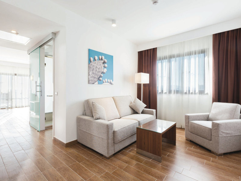 - Junior Suite with Salon (JSX1), Juniorsuite, ca. 40 m², Gesamtanzahl der Räume in diesem Zimmertyp: 2, Aufteilung wie folgt: bestehend aus 2 Zimmern, optisch getrennt ohne Tür oder durch Vorhang, Babybett: ohne Gebühr, Klimaanlage: zentral gesteuert, Heizung: zentral gesteuert, Safe: ohne Gebühr, Deckenventilator, Sofa, Kühlschrank, Telefon, Internet: WLAN/WiFi: ohne Gebühr, Fernseher: deutsches Programm, Sat-TV, Dusche, WC, Föhn, Balkon: mit Sitzgelegenheit