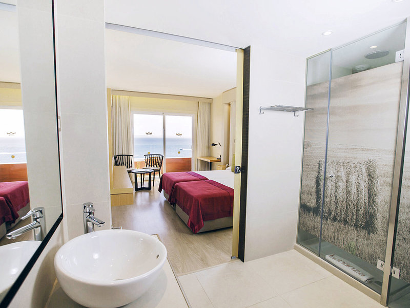 - Double Room Sea View (DZM1), Doppelzimmer, Meerblick, ca. 24 m², Gesamtanzahl der Räume in diesem Zimmertyp: 1, Aufteilung wie folgt: 1 Schlafzimmer, Klimaanlage: saisonabhängig, zentral gesteuert, kalt, warm, Fußboden: Parkett, Safe: gegen Gebühr, Minibar: gegen Gebühr, Telefon, Internet: WLAN/WiFi: ohne Gebühr, Fernseher: Flatscreen, deutsches Programm, Sat-TV, Dusche, WC, Föhn, Balkon: mit Sitzgelegenheit