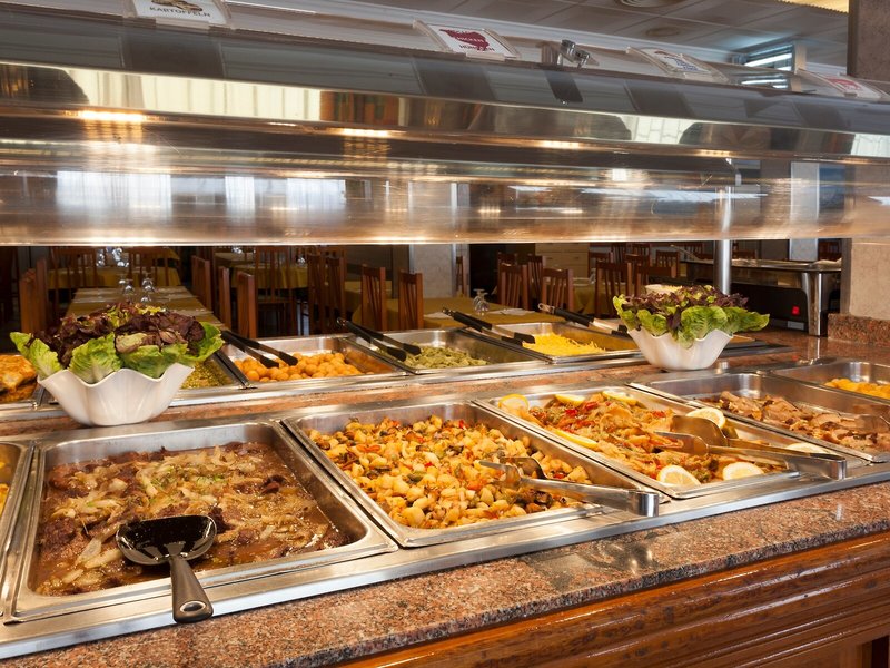 Essen & Trinken: Es stehen verschiedene gastronomische Einrichtungen zur Auswahl, wie ein Café und eine Bar. Verschiedene Spezialitäten erwarten die Gäste in einem Nichtraucherrestaurant mit Klimaanlage. Die Unterbringung bietet als buchbare Verpflegungsleistungen Halbpension, Vollpension und All-Inclusive. Ein leckeres und reichhaltiges Buffet erwartet die Gäste zum Frühstück, Mittag- und Abendessen. Für besondere Gaumenwünsche hält das Hotel Diätgerichte bereit. Zusätzlich sind spezielle Verpflegungsangebote und Snacks erhältlich. Das Haus führt ein Sortiment alkoholischer und alkoholfreier Getränke.