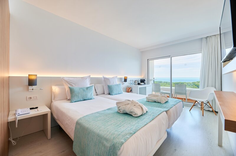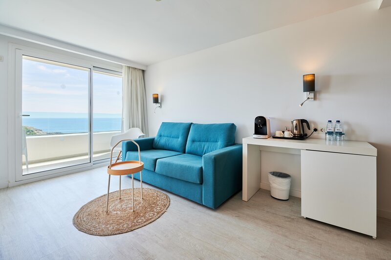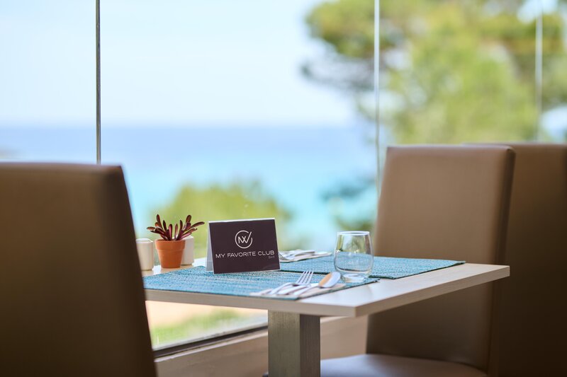 Superior-Doppelzimmer My Favorite Club (DMF, ca. 22qm), Klimaanlage (warm/kalt), gefüllte Minibar am Ankunftstag, TV, Telefon, Basis-WLAN (inkl.), Mietsafe, Kaffeemaschine, Badezimmer mit Dusche, WC, Föhn, Bademäntel, Pantoffeln. Balkon mit Meerblick sowie Zugang zum My Favorite Club mit exklusiven Annehmlichkeiten. Max 2E