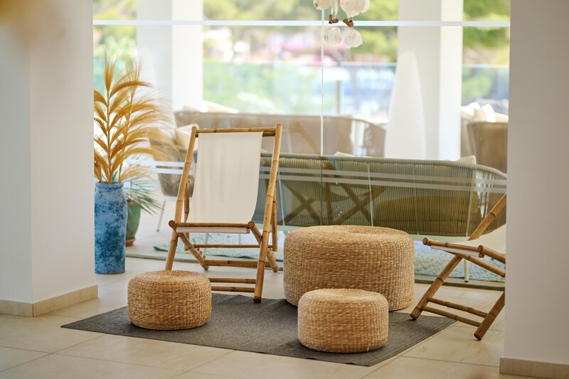 Wohnen: Doppelzimmer (DZ, ca. 22qm), Klimaanlage (warm/kalt), Minikühlschrank, TV, Telefon, Basis-WLAN (inkl.), Mietsafe. Dusche, WC, Föhn. Balkon. Wahlweise Meerblick (DZM).