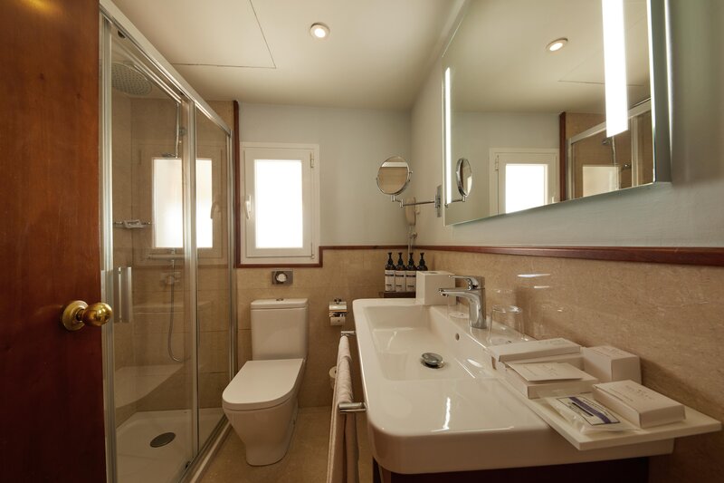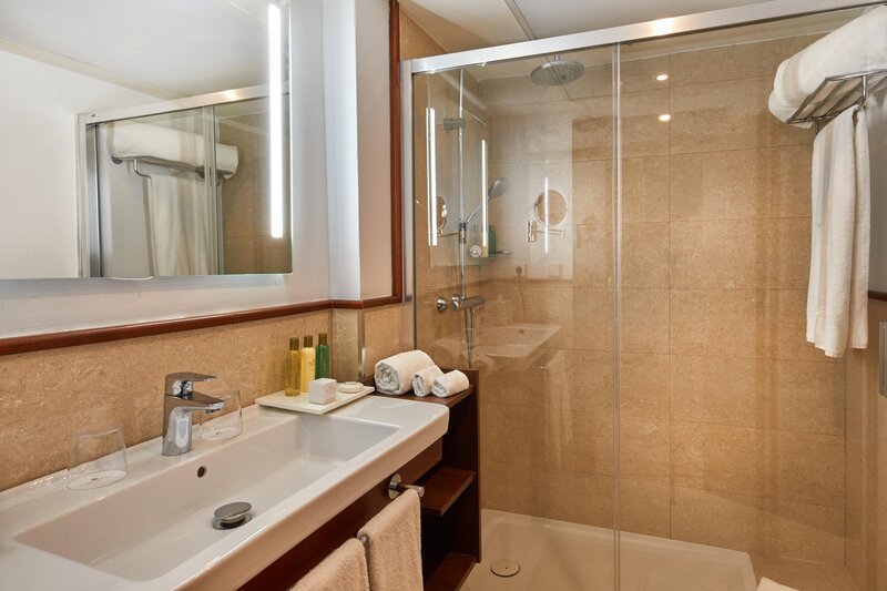 Junior suita (JS, cca 35 m2), klimatizácia (teplá/studená), minibar (za poplatok), príslušenstvo na prípravu kávy/čaju, TV (50 palcov), telefón, WiFi (v cene), trezor. Vaňa alebo sprcha, WC, sušič vlasov, župany, papuče. Balkón alebo terasa, výhľad na more. Maximálne 3E