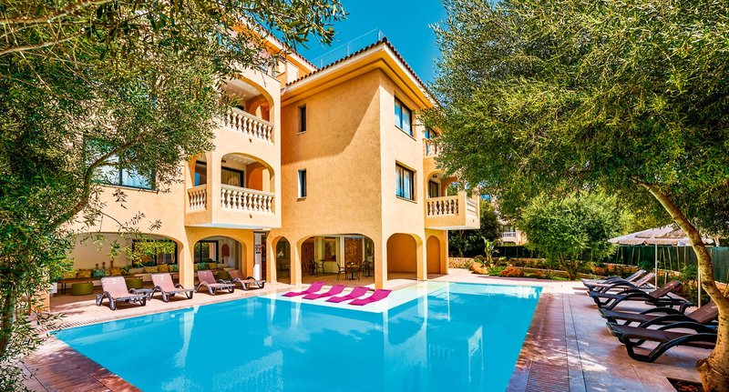 Ausstattung: Garten, 2 Pools. Liegen, Schirme am Pool und am Strand (geg. Geb.). Rezeption, TV-Lounge. 16 Zimmer, 3 Etagen, 3 Nebengebäude, Lift.