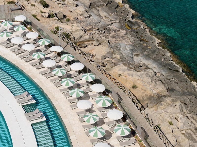 Poloha a okolie Hotel sa nachádza na pobrežnom okraji mesta Colònia de Sant Jordi, približne 200 až 400 metrov od rušného centra mesta. Hotel sa nachádza priamo pri mori so skalnatou plážou, ktorá je prístupná po schodisku (odporúča sa kúpacia obuv). Nedotknutá pláž Estanys je vzdialená približne 1,1 km a malebný maják Sa Puntassa je vzdialený len 1,3 km. Historická slaniská sú vzdialené približne 9 minút jazdy autom a dotvárajú čaro okolia.