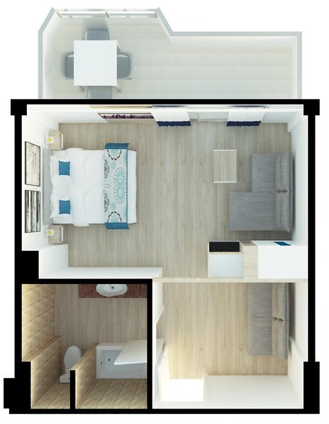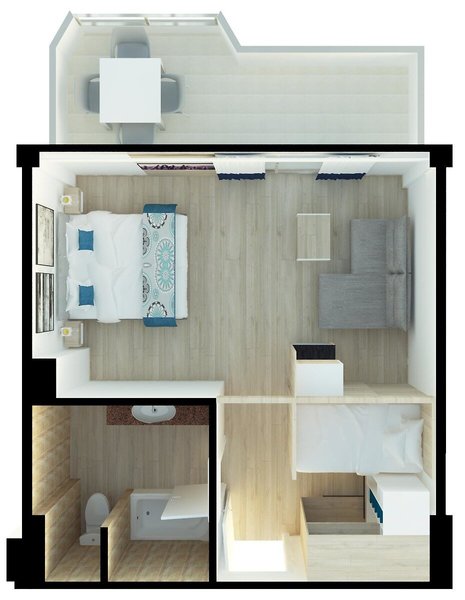- 1 Bedroom Apartment - Sofa (APX4), Appartement, Nichtraucherzimmer, ca. 30 m², Gesamtanzahl der Räume in diesem Zimmertyp: 2, Aufteilung wie folgt: kombiniertes Wohn-/Schlafzimmer, 1 Schlafzimmer, 2 Einzelbetten, 1 Schlafsofa, Klimaanlage: individuell regelbar, kalt, warm, Safe: ohne Gebühr, Kochnische, Kühlschrank, Mikrowelle, Kaffeemaschine, Toaster, Telefon, Internet: WLAN/WiFi: ohne Gebühr, Fernseher, Reinigungsservice: mehrmals pro Woche, ohne Gebühr, Badewanne, WC, Föhn, Balkon: mit Sitzgelegenheit