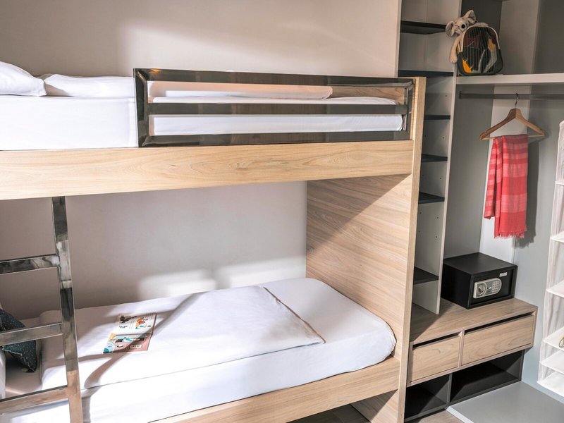 - Twin Room - Bunk (DZX2), Familienzimmer, Nichtraucherzimmer, ca. 30 m², Gesamtanzahl der Räume in diesem Zimmertyp: 2, Aufteilung wie folgt: kombiniertes Wohn-/Schlafzimmer, 1 Schlafzimmer, 1 Etagenbett, Klimaanlage: individuell regelbar, kalt, warm, Safe: ohne Gebühr, Kühlschrank, Mikrowelle, Kaffeemaschine, Toaster, Telefon, Internet: WLAN/WiFi: ohne Gebühr, Fernseher, Reinigungsservice: mehrmals pro Woche, ohne Gebühr, Badewanne, WC, Föhn, Balkon: mit Sitzgelegenheit