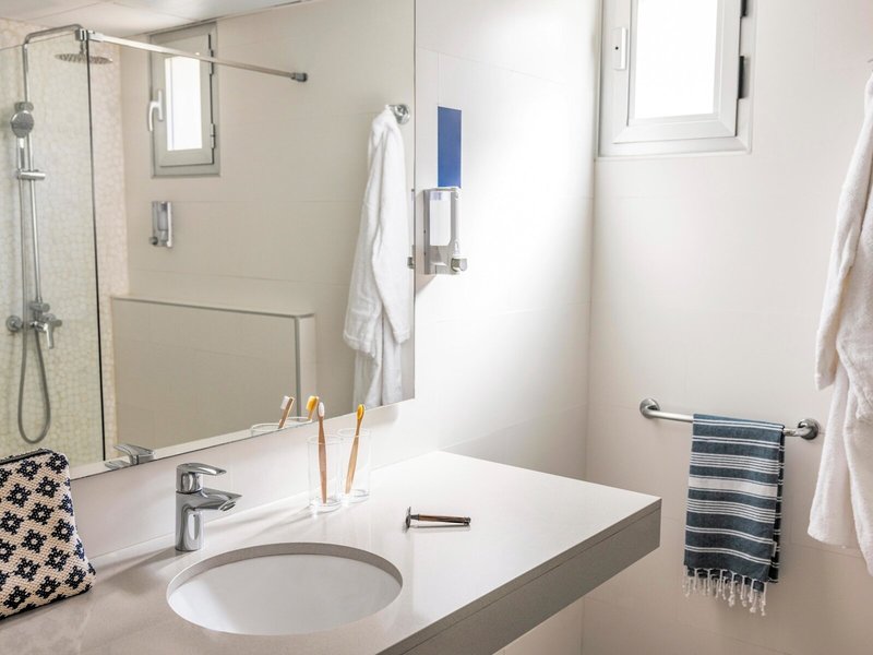 - Einweg-Toilettenartikel aus Plastik werden durch einen Spender ersetzt.