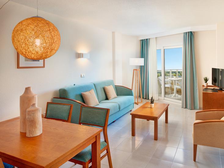 Apartment (Balkon o. Terrasse, 1 Schlafzimmer): Klimaanlage (zentral gesteuert). Kitchenette mit Kühlschrank, Wasserkocher, Mikrowelle, Geschirr, Handtücher. Telefon, Internet (geg. Geb.), Safe (geg. Geb.). Bad/WC, Föhn. Balk./Terr. Max. 3E.