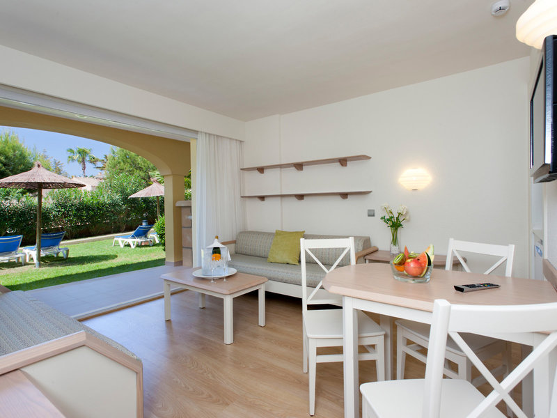 - Apartment Garden Area C (APX3), Appartement, im Nebengebäude, Gartenblick, ca. 42 m², letzte Komplettrenovierung 2012, Gesamtanzahl der Räume in diesem Zimmertyp: 2, Aufteilung wie folgt: kombiniertes Wohn-/Schlafzimmer, 1 Schlafzimmer, 1 Doppelbett (190x200cm), Babybett: ohne Gebühr, Anfrage nicht notwendig, Klimaanlage: individuell regelbar, kalt, warm, Fußboden: Laminat, Safe: gegen Gebühr, Kühlschrank: ohne Gebühr, Mikrowelle, Esstisch, Telefon, Internet: WLAN/WiFi: ohne Gebühr, Fernseher: Flatscreen, im Wohnbereich, im Schlafzimmer, deutsches Programm, Sat-TV, Reinigungsservice: täglich, ohne Gebühr, Badewanne, WC, Föhn, Terrasse: mit Liegestühlen, mit Sitzgelegenheit