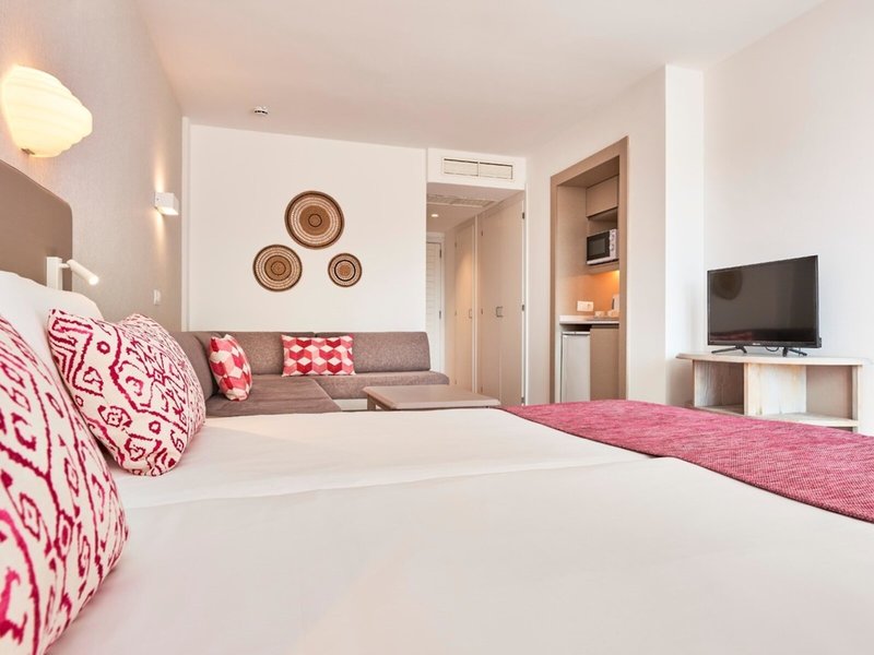 - Studio Area D (STX1), Studio, im Nebengebäude, ca. 26 m², letzte Komplettrenovierung 2021, kombiniertes Wohn-/Schlafzimmer, 2 Einzelbetten, 2 Schlafsofas, Klimaanlage: individuell regelbar, kalt, warm, Fußboden: Laminat, Safe: gegen Gebühr, Kühlschrank, Mikrowelle, Telefon, Internet: WLAN/WiFi: ohne Gebühr, Fernseher: Flatscreen, im Schlafzimmer, deutsches Programm, Sat-TV, Reinigungsservice: täglich, ohne Gebühr, Dusche, Föhn, Balkon: mit Sitzgelegenheit