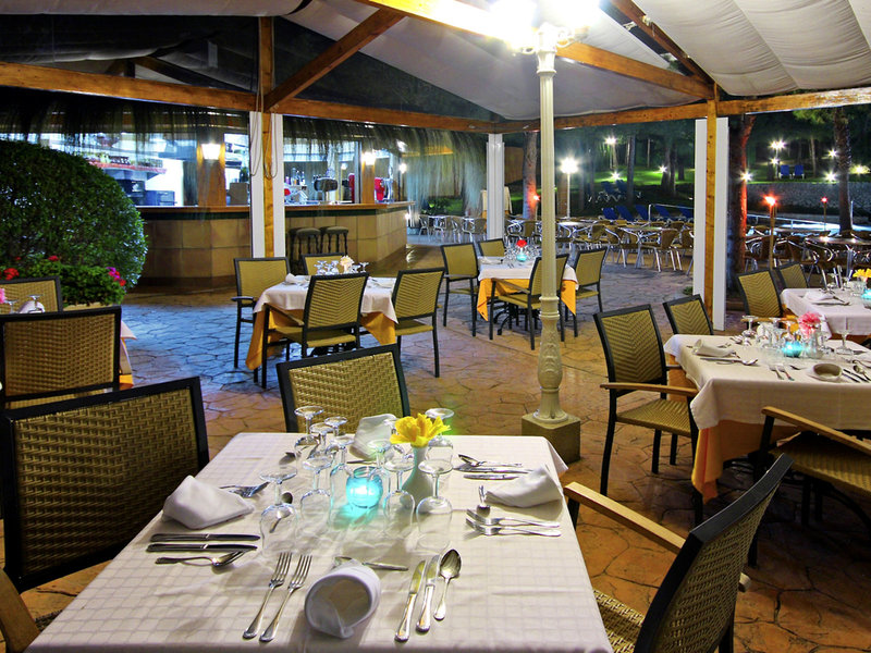 Ausstattung: Garten, 4 Pools, Kinderpool. Liegen, Schirme am Pool und am Strand (geg. Geb.), Handtücher am Pool (geg. Geb.), Pool-/Snackbar, Sonnenterrasse. Empfangshalle, Rezeption, Lobby-Bar, Safe (geg. Geb.), TV-Lounge. Restaurant (Buffet) mit Terrasse, 2 Bars. 330 Zimmer, 4 Etagen, 3 Nebengebäude, 5 Lifte.