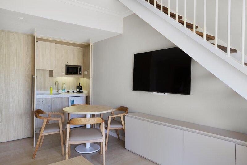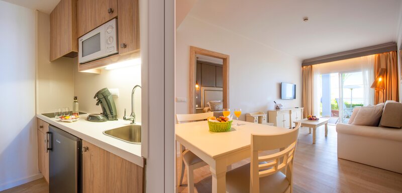 Štandardný apartmán (balkón alebo terasa): Kuchynský kút s chladničkou, rýchlovarnou kanvicou, mikrovlnnou rúrou, riadom. TV, telefón, internet (za poplatok), trezor (za poplatok). Kúpeľňa/sprcha, WC, fén. Balkón/terasa. Max. 3 dospelí.