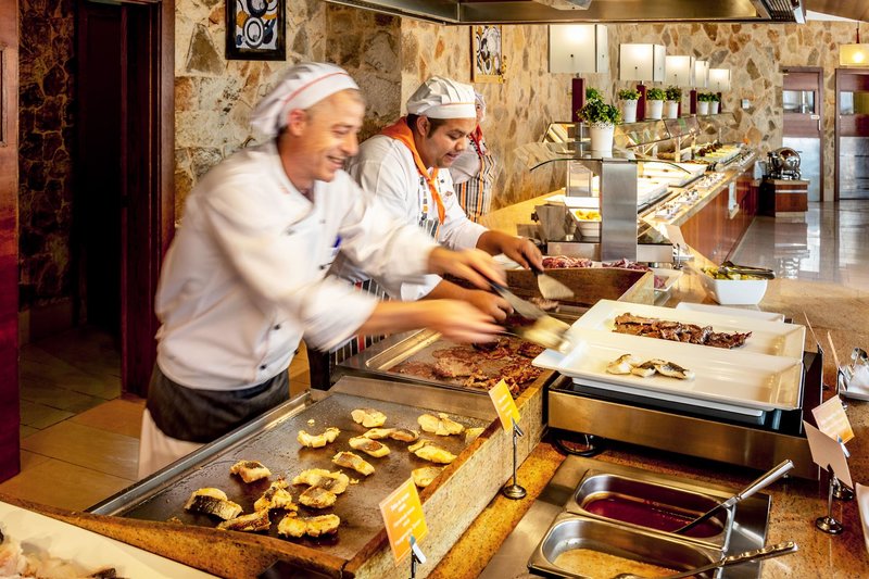 All Inclusive: Raňajky a večere formou bufetu s výberom teplých a studených jedál, show cooking a tematické večery. Obed formou bufetu v reštaurácii "Caprice". Víno, pivo, voda a nealkoholické nápoje sú zahrnuté v cene jedál. Sendviče sú k dispozícii od 10:30 do 12:30 a 15:30. Široký výber národných alkoholických a nealkoholických nápojov je k dispozícii v bare od 10:30 do 23:00. Jedna večera v à la carte reštaurácii "El Patio" je zahrnutá v cene každého 7-dňového pobytu.
