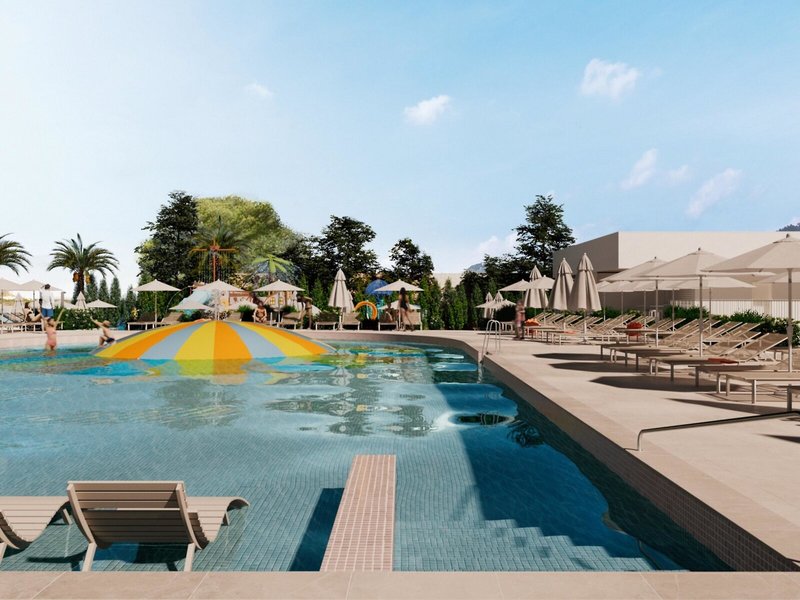 - Hlavný bazén s vírivkou: sezónny; v závislosti od počasia, vonkajší, sladkovodný