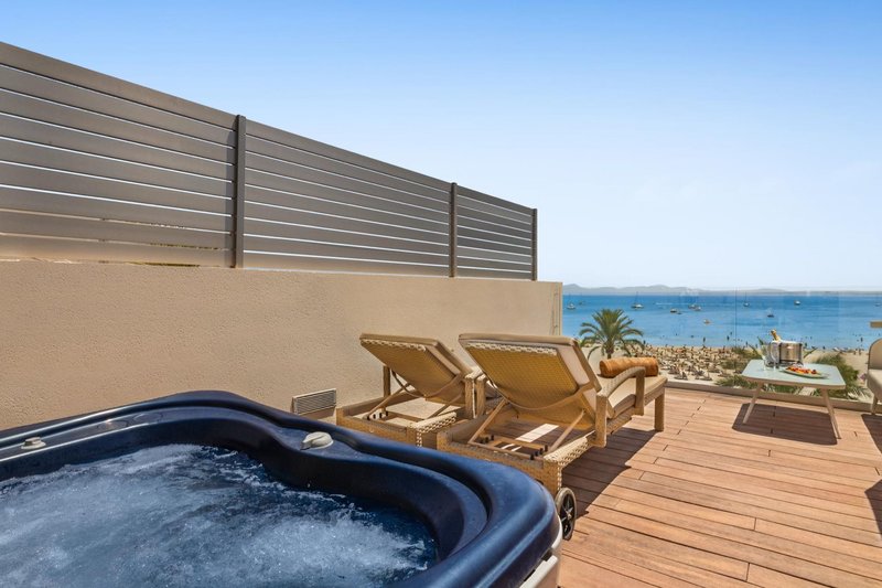 Royal Terrace Selection Club Roof Top: Bei gleicher Ausstattung wie die Doppelzimmer Superior liegen diese in den oberen Etagen und bieten eine Nespressomaschine sowie eine private Dachterrasse mit Whirlpool, Balibetten und direkten Meerblick. (RTF)