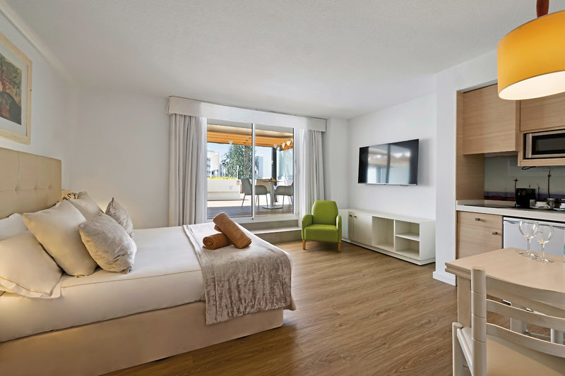 - 41-45 qm, Appartement, Standard, 1 separates Schlafzimmer, kombinierter Wohn-/Schlafraum, Sofabett, bodengleiche Dusche, Bademantel, Badeslipper, Haartrockner, Klimaanlage, Minibar, Auffüllung bei Anreise, Safe, 2 TVs (Sat-TV, Smart-TV), WLAN, Kochnische, Wasserkocher, Mikrowelle, Espressomaschine, Toaster, Kühlschrank, Balkon (möbliert), Kopfkissen-Menü, separater Check-in & Check-out, late Check-out (nach Verfügbarkeit), Concierge-Service