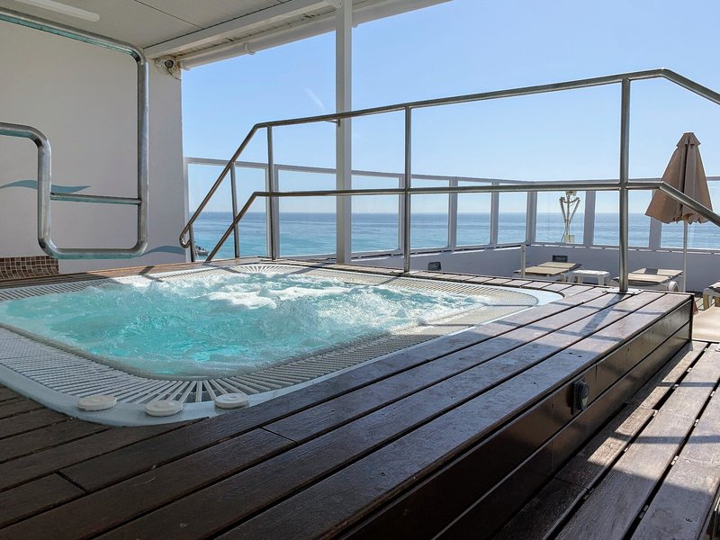 - Whirlpool Jacuzzi en la azotea: vyhrievaná, na strešnej terase, ležadlá, ležadlá, slnečníky, strešné okná