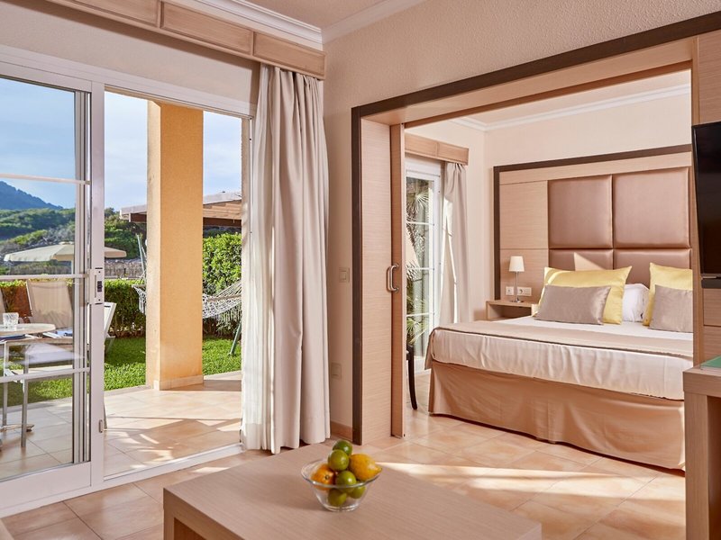 - One Bedroom Swim Up Suite (APX2), Appartement, Poolseite, Gartenseite, Poolblick, Gartenblick, Blick auf Vista piscina, ca. 43 m², Gesamtanzahl der Räume in diesem Zimmertyp: 2, Aufteilung wie folgt: kombiniertes Wohn-/Schlafzimmer, 1 Schlafzimmer, Babybett: pro Tag ca. 4 EUR, Klimaanlage: ohne Gebühr, zentral gesteuert, kalt, warm, Safe: gegen Gebühr, Sofa, Kochnische, Kühlschrank: ohne Gebühr, Mikrowelle, Wasserkocher, Toaster, Esstisch, Telefon, Internet: WLAN/WiFi: ohne Gebühr, Fernseher: Flatscreen, im Wohnbereich, Reinigungsservice: Di., Mi., Fr. - So., ohne Gebühr, Dusche, WC, Föhn, Terrasse: mit Sitzgelegenheit, mit Privat-Garten