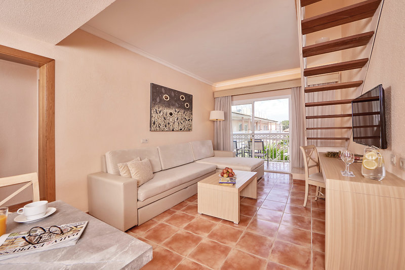 - 51-60 qm, Suite, Erdgeschoss, Gartenblick, Poolblick, 1 separates Schlafzimmer, kombinierter Wohn-/Schlafraum, Sofabett, Badewanne, Regendusche, Haartrockner, Klimaanlage, Safe, 2 TVs (Sat-TV, Flachbildschirm), WLAN, Kochnische, Wasserkocher, Mikrowelle, Kaffeemaschine, Toaster, Kühlschrank, Terrasse 26-30 qm (möbliert), direkter Poolzugang, Gemeinschaftspool