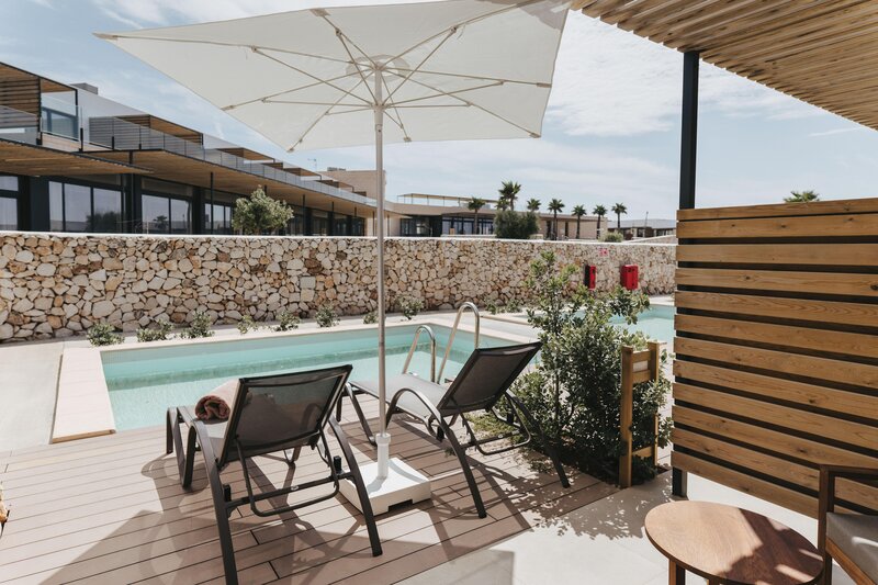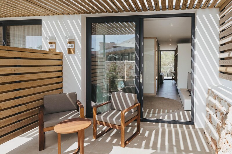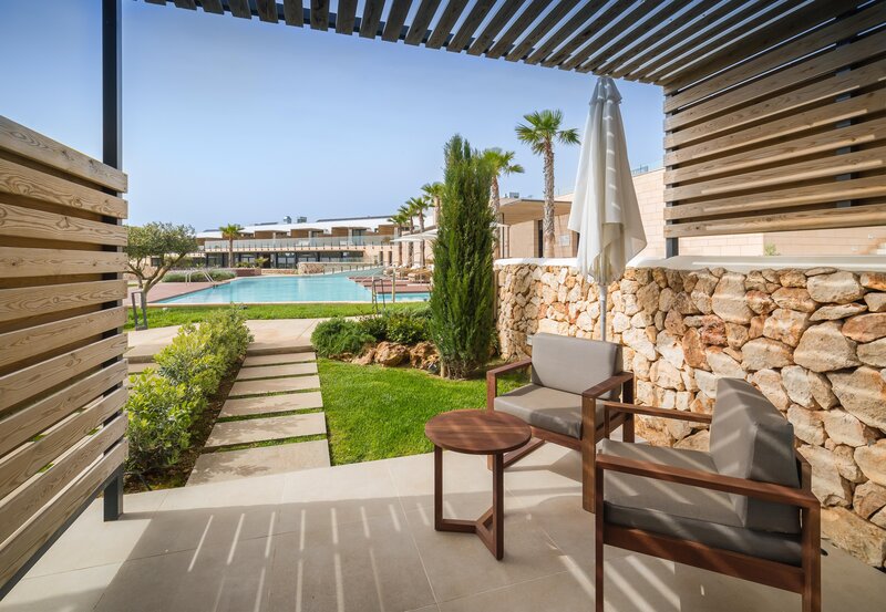 Standard Juniorsuite: Minibar (geg. Geb.). Wasserkocher, Handtücher. TV, Telefon, Internet (geg. Geb.), Safe (geg. Geb.). Bad/Dusche, WC, Föhn, Bademantel. Terrasse. Geteilter Pool. Max. 2E.