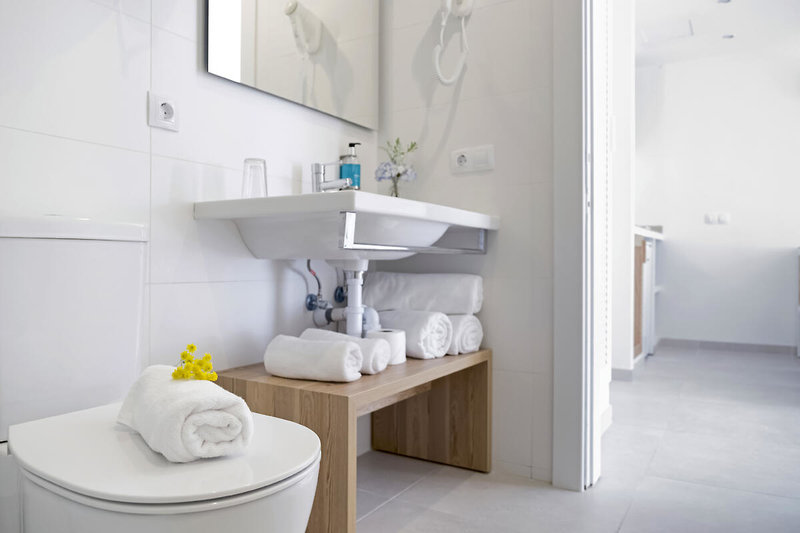 - 26-30 qm, Appartement, 1 separates Schlafzimmer, kombinierter Wohn-/Schlafraum, Sofabett, Dusche, Haartrockner, Klimaanlage, Safe, 1 TV (Sat-TV, Flachbildschirm), WLAN, Kochnische, Mikrowelle, Kühlschrank, Balkon (möbliert)