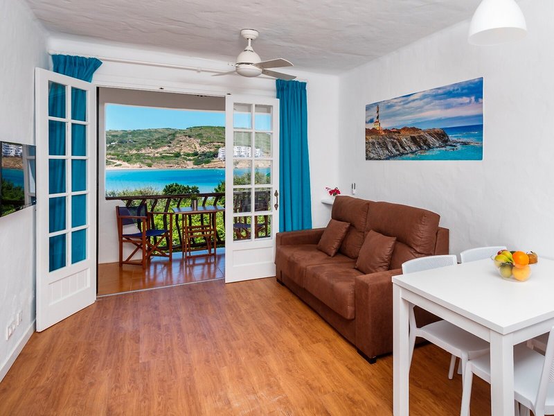 Lage & Umgebung Der Apartmentkomplex befindet sich im Feriengebiet von Playo de Fornells, direkt am wunderschönen Sandstrand. Das Stadtzentrum und der Fischerort Fornells liegen ca. 3 km vom Komplex entfernt. Restaurants, Bars und die nächste Haltestelle der öffentlichen Verkehrsmittel befinden sich in unmittelbarer Nähe des Apartmentkomplexes. Der Flughafen von Menorca ist ca. 35 km entfernt.