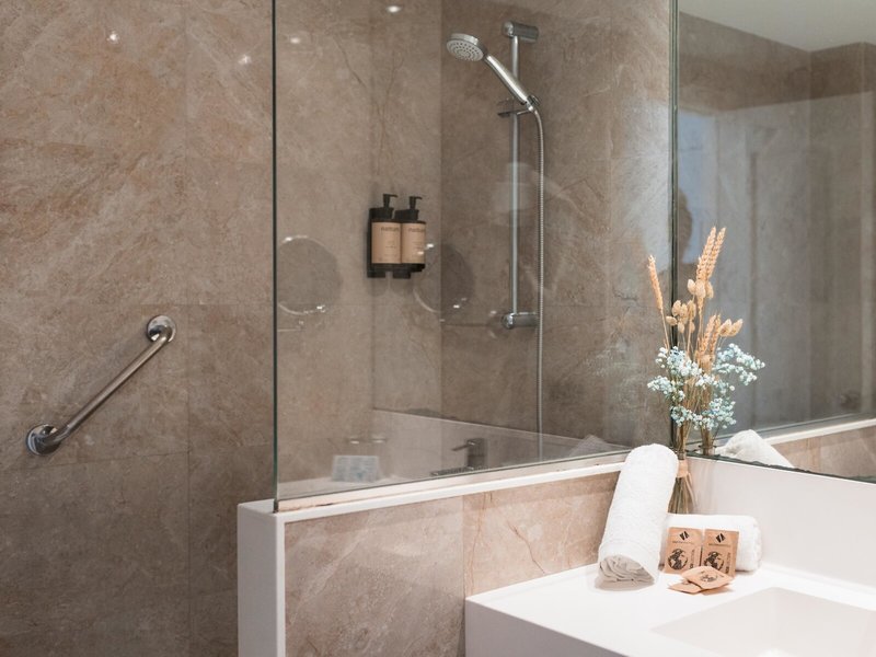 - Die Unterkunftswäscherei sorgt für einen effizienten Verbrauch, um Wasserverschwendung zu vermeiden.