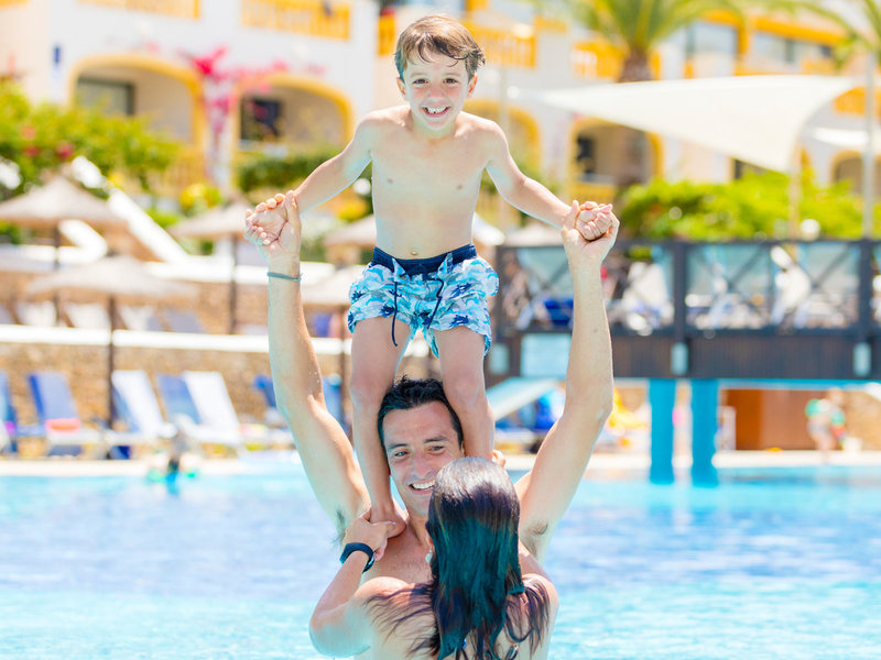 - Cuqui Royal - 2 bedrooms (APX1), Appartement, Nichtraucherzimmer, Poolblick, Innenhofblick, Blick auf vistas al miniclub, ca. 50 - 55 m², Gesamtanzahl der Räume in diesem Zimmertyp: 3, Aufteilung wie folgt: Wohnzimmer, 2 Schlafzimmer, 2 Einzelbetten (90x200cm), 1 Schlafsofa (80x180cm), 2 Kinderbetten (80x180cm), Babybett: ohne Gebühr, Klimaanlage: ohne Gebühr, Mai - Oktober, individuell regelbar, kalt, warm, Fußboden: Parkett, Safe: ohne Gebühr, Deckenventilator, Sitzecke, Sofa, Kochnische, Kühlschrank: ohne Gebühr, Kochplatte, Mikrowelle, Wasserkocher, Esstisch, Telefon, Internet: WLAN/WiFi: ohne Gebühr, Fernseher: im Wohnbereich, im Schlafzimmer, deutsches Programm, Sat-TV, Reinigungsservice: ohne Gebühr, Badewanne oder Dusche, WC, 2 Bäder, Föhn, Kosmetikspiegel, Balkon oder Terrasse: mit Sitzgelegenheit