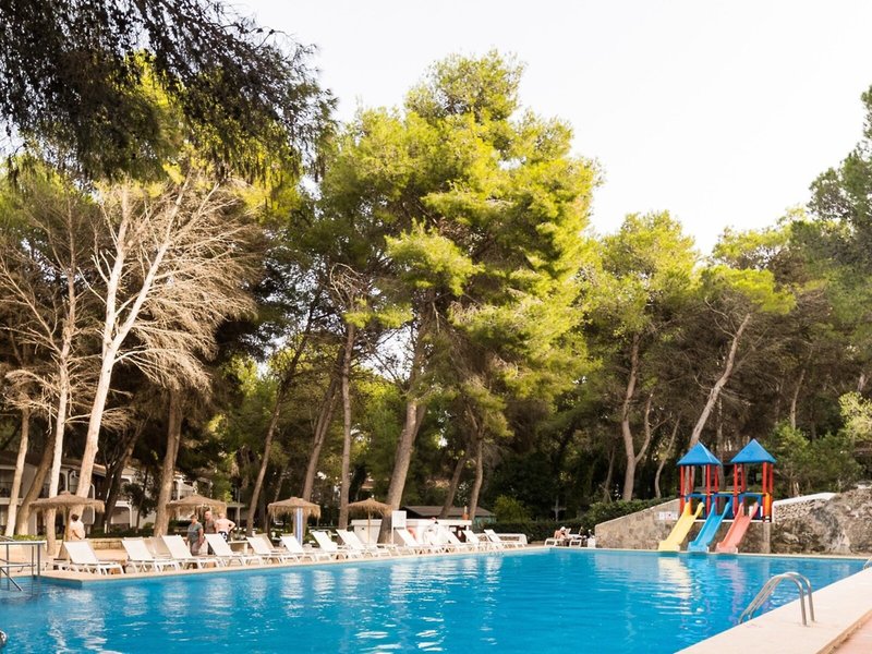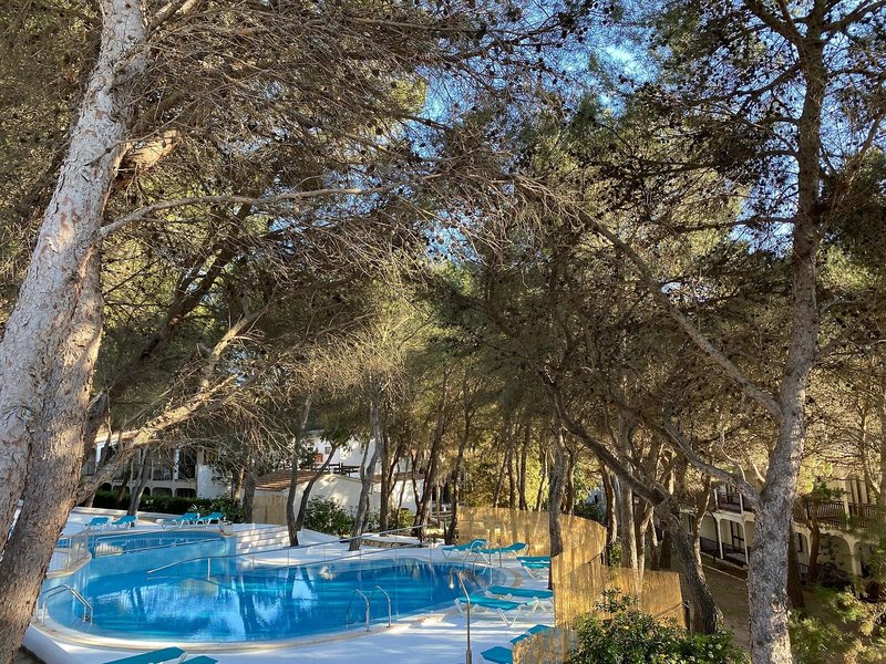 Poloha a okolie Nachádza sa v zelenom borovicovom lese s dobre udržiavanou a krásnou záhradou, vedľa piesočných dún, odkiaľ vedie chodník priamo z apartmánového hotela na pláž. Hotel sa nachádza cca 500 m od pláže. Do centra Son Parc je to cca 1 km. Letisko Menorca je vzdialené približne 27 km.