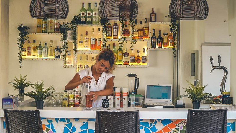 Ausstattung: Die Anlage ist wie ein kleines Dorf gestaltet und bietet 87 Wohneinheiten verteilt auf ein Haupthaus und mehrere Wohngebäude. Sie begeistert mit traumhaftem Meerblick, besonders eindrucksvoll vom Chill-out-Bereich bei Sonnenuntergang. Ein Außenpool mit großzügiger Sonnenterrasse, Liegen und Sonnenschirmen lädt zum Entspannen ein. Zur weiteren Ausstattung gehören eine Rezeption, kostenfreies Wi-Fi, eine Poolbar sowie ein Buffetrestaurant.