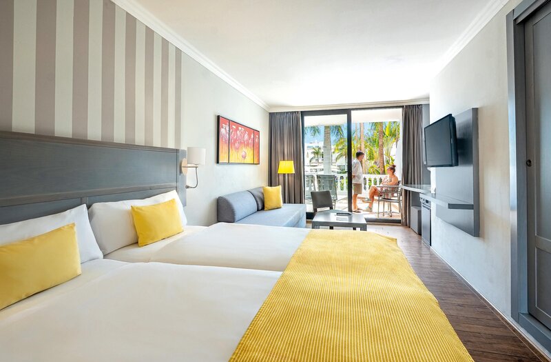 Vybavenie: Útulný rekreačný komplex s hlavnou budovou a niekoľkými obytnými budovami v štýle kanárskych bungalovov. Udržiavaná záhrada, bazénová zóna, niekoľko slnečných terás, ležadlá a slnečníky v cene (plážové osušky za zálohu, výmena za poplatok), bar pri bazéne/snack bar s terasou na sedenie, pergola a pódium. Strešná terasa s krásnym výhľadom na more, vírivka, ležadlá a slnečníky v cene. Lobby, recepcia, Wi-Fi (v cene), posedenie, lobby bar s veľkoplošnou TV, reštaurácia s vonkajšou terasou. Kategória krajiny: 3 hviezdičky, 290 izieb, 2-3 poschodia, výťah.