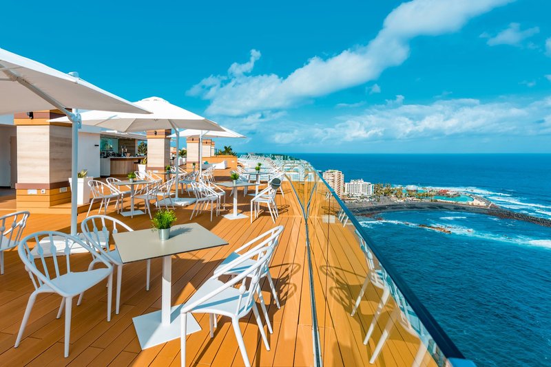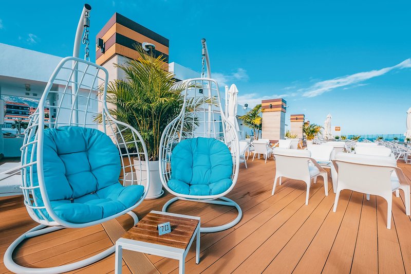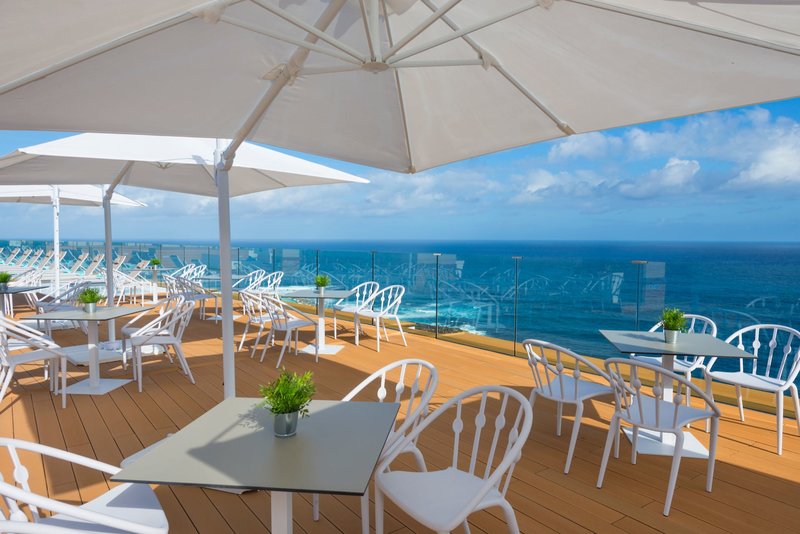 Ausstattung: Das ideal gelegene Atlantic Mirage mit 181 Zimmern auf 9 Etagen bietet unseren Gästen eine Empfangshalle mit Rezeption (auf der 7. Etage), Aufzüge, Spa & Wellnessbereich "SPACIO10", das Buffetrestaurant "MIRAGE" (Frühstücks- und Abendbuffet) mit herrlichem Blick auf den Küstenweg und den Atlantischen Ozean, das Themen-Restaurant "THE CLIFF" (gegen Gebühr), die "Ocean Blues Bar" und die Dachterrasse "Vértigo Terrace & Sky Bar". In der modern gestalteten Außenanlage befindet sich ein Swimmingpool (beheizbar) und eine Sonnenterrasse mit Liegen und Schirmen, welche zum Entspannen und Verweilen einlädt sowie die Poolbar "Deck". Auf der Dachterrasse "Vértigo Terrace & Sky Bar" mit herrlichem Ausblick auf den Atlantik befinden sich weitere Liegen sowie Whirlpools und eine Bar.