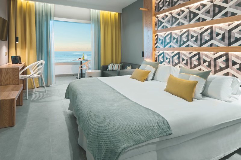 Juniorsuite Meerblick (ca. 26 m²): Die modern und stilvoll ausgestatteten Juniorsuiten verfügen über ein Kingsize-Bett (teilweise mit 2 Matratzen, die nicht auseinander geschoben werden können), Klimaanlage, Minikühlschrank (leer), Mikrowelle, Wasserkocher (kein Tee/Kaffee), Wi-Fi inkl., Telefon, Flachbildschirm-Sat.-TV, Mietsafe, Bad mit Doppelwaschbecken sowie begehbarer Dusche mit LED-Beleuchtung, WC und Föhn und möblierten Balkon mit spektakulärem Panoramablick über das Meer (J2M). Wahlweise auch zur Alleinbenutzung buchbar (J1M).