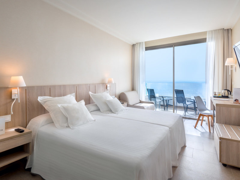 - Double Deluxe Sea View (DZM3), Doppelzimmer, Mindestalter im Zimmer: 18 Jahre, im Hauptgebäude, Meerblick, ca. 25 - 27 m², letzte Komplettrenovierung 2019, Gesamtanzahl der Räume in diesem Zimmertyp: 1, Klimaanlage: ohne Gebühr, individuell regelbar, Fußboden: Laminat, Safe: ohne Gebühr, Minibar: gegen Gebühr, Telefon, Internet: WLAN/WiFi: ohne Gebühr, Fernseher: deutsches Programm, Roomservice: täglich, Reinigungsservice: täglich, ohne Gebühr, Badewanne oder Dusche, WC, Föhn, Balkon: mit Sitzgelegenheit, Balkon oder Terrasse