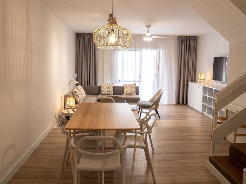 So wohnen Sie: In den Zimmern gibt es ein Wohnzimmer, eine Küche und ein Badezimmer, für angenehmes Raumklima sorgt ein Ventilator. Auf dem Balkon oder der privaten Terrasse der meisten Zimmer können die Gäste entspannen und den Blick auf das Meer genießen. Gemütlich schlafen können die Gäste auf einem Sofabett. Auch Baby- und Zustellbetten können zur Verfügung gestellt werden. Es gibt einen Schreibtisch. Auch ein Kühlschrank, ein Minikühlschrank, eine Mikrowelle und eine Tee-/Kaffeemaschine sind vorhanden. Darüber hinaus sind ein Telefon mit Direktwahl, ein TV-Gerät und WiFi (gegen Gebühr) vorhanden. Zum Service-Angebot gehört auch eine Endreinigung.